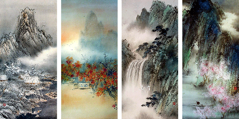 水墨設 色紙本 - 韓國麻紙 Chinese ink & Colour on Korean paper 28” x 14”