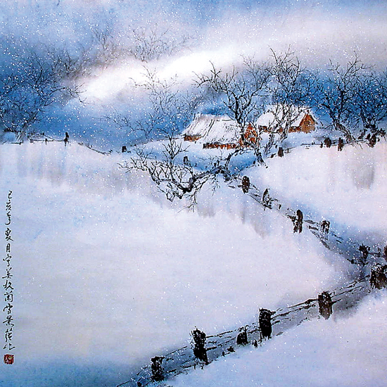 #01-128 雪村 Snow Village Painted in 1995