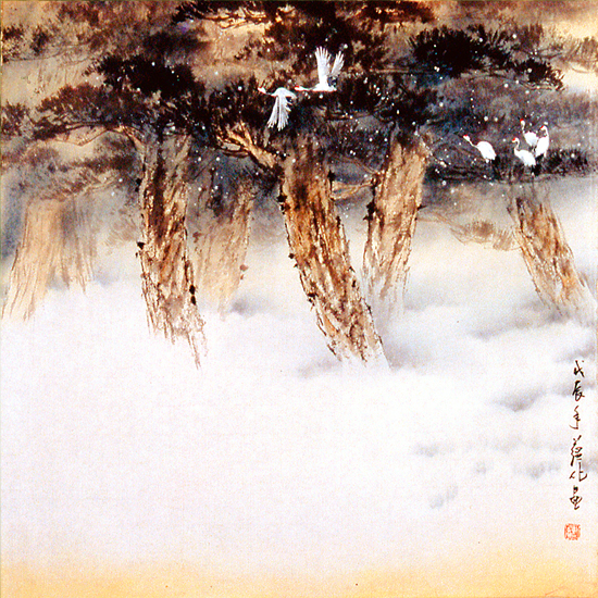 水墨設 色紙本 - 韓國麻紙 Chinese ink & Colour on Korean paper 28” x 28”