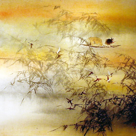 #01-189 黃昏垂釣 Fishing in the Sunset Painted in 1997