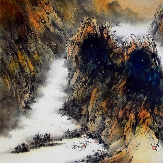 #01-211 晚山無語對斜陽 Misty Sunset Painted in 1997