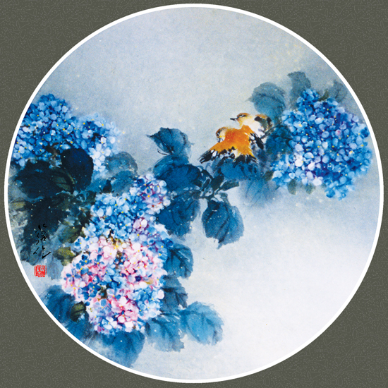 水墨設 色紙本 - 韓國麻紙 Chinese ink & Colour on Korean paper 28”Round
