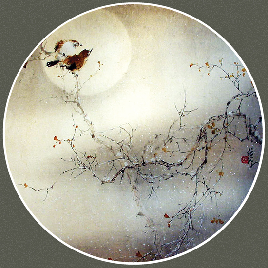 水墨設 色紙本 - 韓國麻紙 Chinese ink & Colour on Korean paper 28”Round