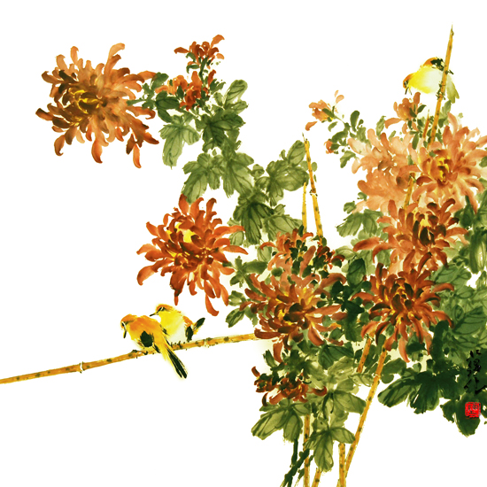 #02-34 秋意濃 Chrysanthemums Painted in 1997
