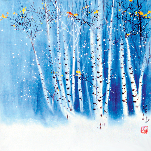水墨設色紙本 - 單宣 Chinese ink & Colour on Rice paper 14” x 14”