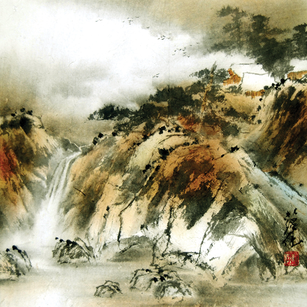 水墨設色紙本 - 韓國麻紙 Chinese ink & Colour on Korean paper 14” x 14”