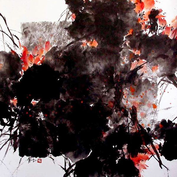 #06-11 Red Lotus 溪上新荷初出水 Painted in 1989